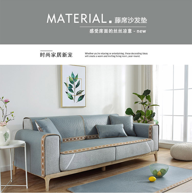 南極人NanJirenソファマット夏の高級冷製マット氷糸夏スタイル藤シートカバー滑り止めマット四季通用布芸カバーアイスクリーム-ベージュ80*180 cm