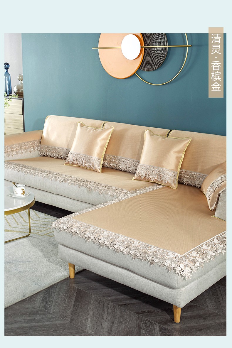 木儿の家の夏の凉しい席のソファーは夏のアイスクリームのソファーカバーを敷いて滑り止めの凉しいマットをカバーします。夏のクッションはy清霊-シャンパンの金(氷糸)一枚80*80 cmを注文できます。